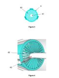 [0018] A figura 4 uma concretização do diafragma utilizado no compartimento para o aprisionamento do líquido higienizador com o detalhe das superfícies rugosas nas projeções radiais.